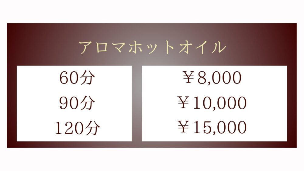 滑らかなオイルの心地よさと、手のぬくもりに包まれて、深い癒しの時間をお過ごしください。